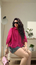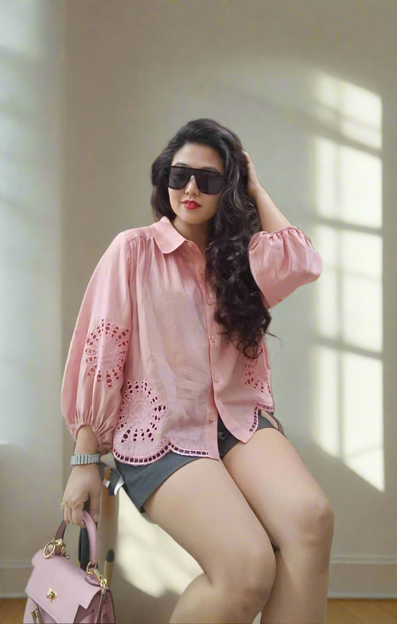 This delightful Embroidered Balloon Sleeve Blouse is a perfect blend of sweet and playful. Its intricate detailing and airy silhouette make it your new go-to top for casual outings and warm-weather style.