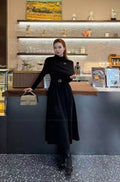 The highlight is the unique detachable ribbed turtleneck collar, which adds a touch of modern flair and allows for versatile styling.