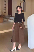 The vest can dress up any simple blouse or dress, and the midi skirt is a perfect staple for both professional and casual looks. A truly essential set for effortless style across seasons.
