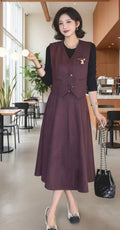 Get three looks in one with this incredibly versatile set! This ensemble features a stylish button-front vest and a flattering high-waist A-line skirt, both made from a comfortable, mid-weight material.